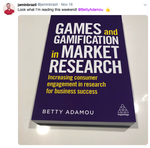 “Betty Adamou is the absolute expert when it comes to games and gamification in market research. Her book is steeped in practical advice and is written in such an engaging way that you won’t be able to help yourself in sharing her knowledge with others. Don’t expect a dry manual.